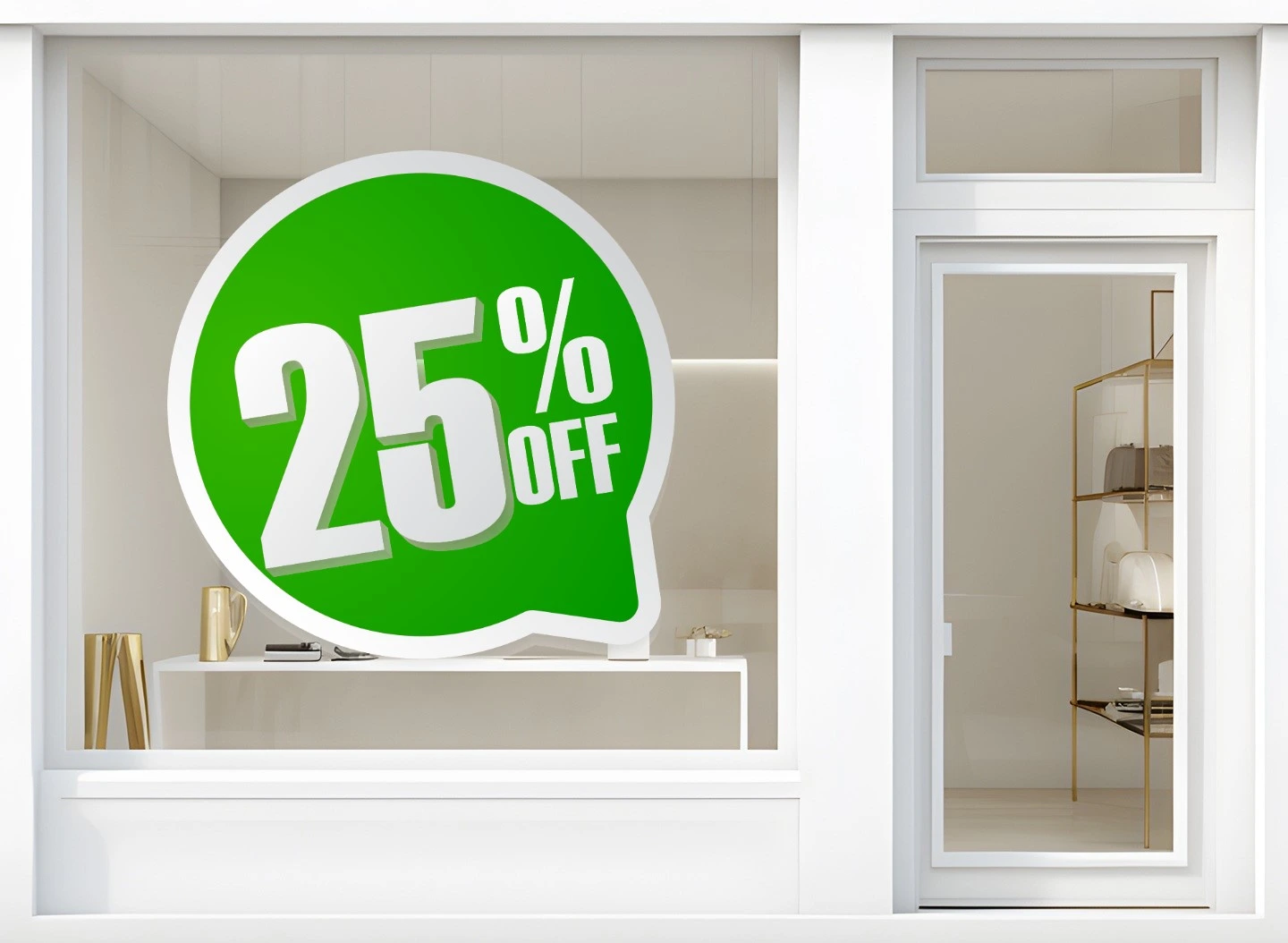 Answer: We offer small format decals, medium format decals, and large format decals for business storefront. Extra large stickers for storefront are also available on request.