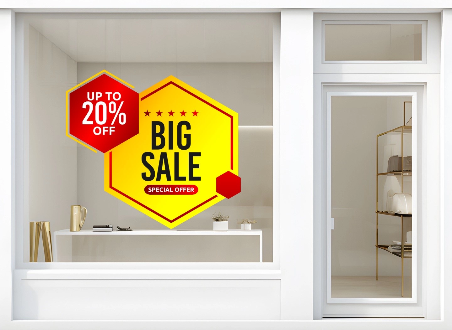 Answer: We offer small format decals, medium format decals, and large format decals for business storefront. Extra large stickers for storefront are also available on request.